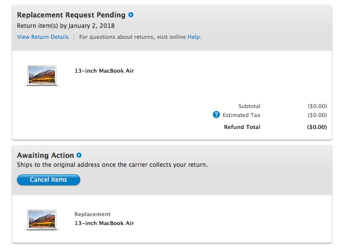 i confused right now. ordered macbook air , arrived yesterday. initiated replacement apple.